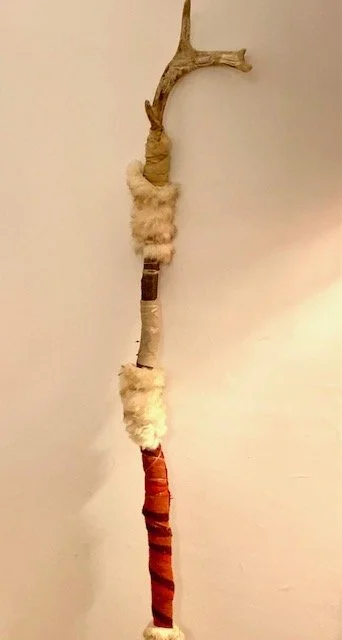 Mohican walking stick with ‘Many Trail’ carving will hold the earth chime